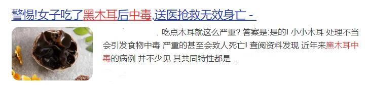 吃泡发时间过长的木耳导致的食物中毒,这其实并不是木耳的错。 干木耳因为在准备泡发前或泡发过程中污染了椰毒假单胞菌,加之常温泡发时间过长,促使椰毒假单胞菌大量繁殖,产生一种毒素——米酵菌酸(Bongkrekic acid,RA),这种毒素会引起损害肝、肾、脑为主的中毒 。 2018年浙江省疾控中心实验室在从疑似中毒食品和中毒者血液中分离和检测出了椰毒假单胞菌及其产生的米酵菌酸后,木耳终于甩掉了这个多年的黑锅。 众所周知,食物制备要彻底加热、煮熟,延长高温烹调时间是杀灭微生物、破坏毒素、预防食物中毒的有效手段。 然而,煮熟后食用的木耳为什么还会出现严重中毒甚至死亡呢? 这是因为米酵菌酸这种毒素不怕高温,100度的开水,包括所有日常用的炒、煮、蒸、焖、烤、炸等烹饪方式都无法减少和消除这种的毒素。 无论人或动物,食入米酵菌酸这种毒素污染的食物2~24小时、有的在3天内会出现上腹部不适,恶心、呕 吐、腹泻、头晕、全身无力。 重者出现黄疸、皮下出血、肝肿大、呕血、血尿、少尿、不安、惊厥、意识不清、烦躁、抽搐、休克昏迷等中毒症状,甚至死亡,死亡率高达50%。 目前为止,医学上也没有针对性的快速解毒的特效药物。