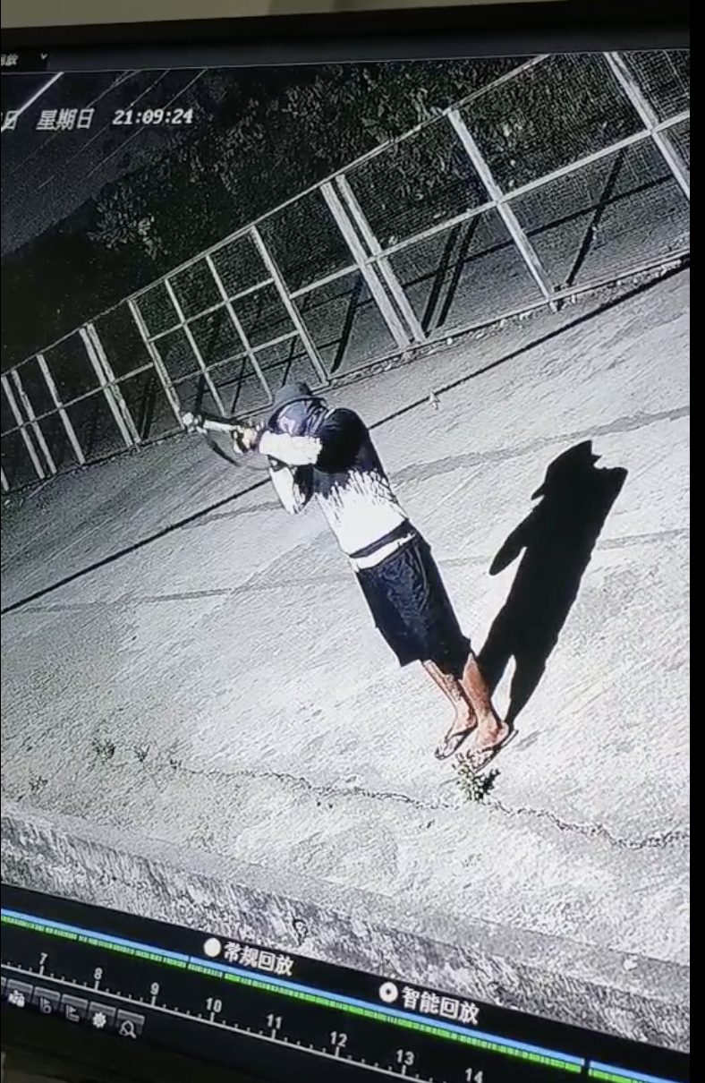 3月14日监控画面显示,袭击者正使用枪支瞄准目标。本文图片均为受访者提供