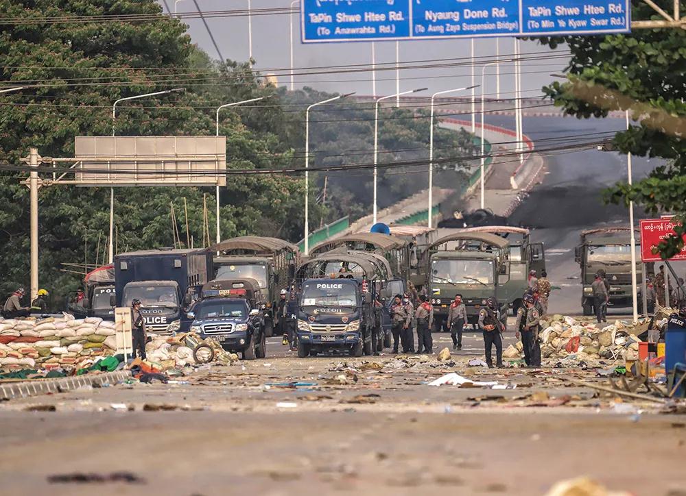 当地时间2021年3月14日,缅甸仰光,部分地区实施军事管制。人民视觉 图