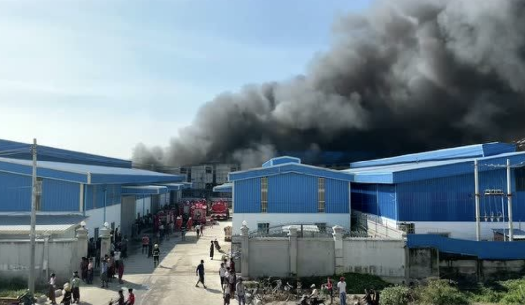 2月17日,仰光德贡色柑镇区的一家中国箱包工厂发生火灾