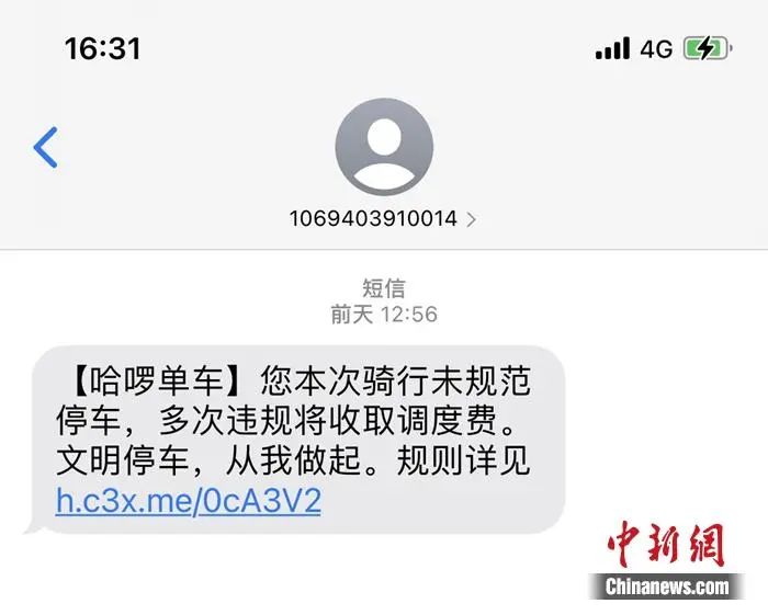 多次违规停车将收取调度费短信截图。受访者供图