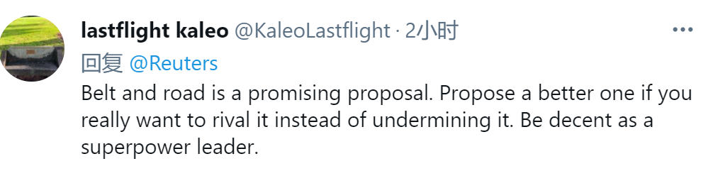 从气急败坏到眼红?美国又出招儿拉拢盟友,打起 “一带一路”倡议的主意密谋合作对付中国,只是这剧情……似乎从抹黑操作逐渐走向开始模仿这一倡议。连不少网友都嘲讽说,美国此举是在“山寨”和“跟风”中国,这些西方政客这样“玩阴的”一点也不“体面”。 据英国《每日电讯报》消息,美国总统拜登当地时间26日受访时公开表示,他当天早些时候与英国首相约翰逊通话并向后者建议:美英两国应制定一个大规模基础设施计划,与中国的“一带一路”倡议抗衡。 视频截图 根据美国白宫26日发布的声明,英美领导人当天通话中除讨论抗击新冠疫情和应对气候变化等问题,双方还表示“同意在包括中国和伊朗在内的共同外交政策优先事项上密切合作”。《每日电讯报》表示,此次通话是自拜登上任以来第二次与英国首相通话,而拜登随后受访谈及通话内容时,对中国的经济和政治影响力表现出担忧。 白宫刊出美英领导人通话声明 拜登表示:“我们谈了很多关于英美需要站在一起、北约是否应该站在一起、我们是否需要团结一致,以及我是否能来开北约会议的问题,我希望我来开会,我觉得是在6月下旬。” 拜登随即分享他向约翰逊提出的一个所谓“建议”:“我建议我们做的一件事就是——我们谈到中国以及他们发起‘一带一路’倡议所带来的竞争。我建议,我们实际上应该有一个类似的倡议,由民主国家牵头,帮助世界各地那些实际上需要帮助的群体。” 拜登26日在特拉华州停机坪接受记者采访 图自美媒 此前憋坏抹黑“一带一路”倡议,现在又拉拢盟友合作建议实施同类倡议,不少网友忍不住吐槽起美国。 有人嘲讽拜登:“这家伙,光山寨,没什么原创。”↓ “跟奥巴马一样。全是别人的想法,而不是他自己的?”↓ “这是中国自己实施的。美国却需要盟友来执行模仿这一倡议。美国现在是在跟着中国走?”↓ 还有不少人直接指责此举一点也不光明磊落,不体面。 “这些西方政客只是在玩阴的,因为他们知道他们不可能光明磊落取胜。”↓ “‘一带一路’是一项很有前景的倡议。如果你真的想与之竞争,那就提出一个更好的方案,而不是破坏它。做个体面点的超级大国领导人吧。”↓ 就在前一天(3月25日),美国《财富》杂志网站刊载艾克·弗雷曼的文章,喊话部分敌视中国“一带一路”倡议的西方声音称,“中国不是在掠夺别国”,美国别老盼着“一带一路”失败。文章表示,“中国不是在掠夺别国,而是吸引愿意合作的伙伴。这是因为中国提供了一套美国所没有的经济、政治和技术方案。这包括看不见但意义重大的能力,让伙伴相信中国会在危机时刻施以援手。‘一带一路’不只是基础设施建设,它还涉及到身份和理念。它是中国力量与世界接轨的品牌,也是有关中国特色世界秩序观的口号。过去70年,美国一直是世界上最强大的品牌。但特朗普政府让这个品牌沾上了污点。在与中国的全球竞争中,批评‘一带一路’不是办法。企图在中国擅长的领域击败它也是幻想。如果北京讲‘合作共赢’,我们的反击就不能是‘美国优先’”。 来源于环球网/张晓雅,转载目的在于传递更多信息,并不代表本网站赞同其观点和对其真实性负责。如涉及作品内容、版权和其它问题,请在后台联系微信,我们将在第一时间删除内容! |