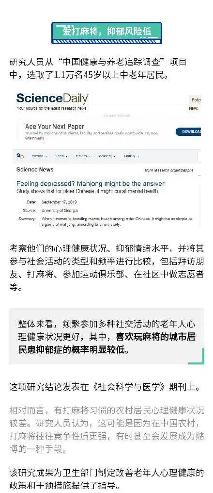 打麻将还可以促进健康?近期,广东东莞市康复医院引进自动麻将机来促进患者康复,引起网友热议。" 医院引进自动麻将机助患者康复 " 还上了微博热搜。 据广州日报报道,近期,广东东莞市康复医院住院部新到了一台康复训练 " 利器 " ——自动麻将机。该院神经康复科医护人员认为,它对脑卒中(中风)患者的康复能带来不小的帮助。" 打麻将抓牌得动手,可锻炼上肢;要动脑,锻炼记忆力和认知能力;还要说话,锻炼言语能力。关键是有趣,不枯燥。" 现在该科室住院的 50 多个病人中,有 20 多人都报名想打麻将。医护人员在每天晚上会安排几个患者轮流打一会儿,时间不会太长。 除了麻将机,该医院还有卡拉 OK、兵乓球台、跳广场舞,将各种手段都运用到康复中去。 记者搜索发现,此前国内已有多家康复医院或康复机构运用麻将来帮助患者康复。 长沙湘衡康复医院治疗师上班时间带着患者玩麻将,还被患者子女投诉。经过反复沟通、解释,家属已完全理解,并继续接受玩麻将治疗。康复治疗师解释,打麻将并不是喊个三五个人凑一桌,而是结合病人的病情评定,利用麻将为病人设计属于她的康复诊疗计划。 浙江嘉兴市第二医院也曾让中风后半身瘫痪的 80 岁老伯玩麻将牌,护士介绍,这是在做手指的康复训练。 另外,打麻将还有利于老年人的心理健康。 华中科技大学同济医学院和美国乔治亚大学公共卫生学院的联合研究团队也曾发现:打麻将有助显著提高中老年人心理健康水平,降低老年抑郁症发病率。 网友评论:病好了 钱没了 来源于潇湘晨报,转载目的在于传递更多信息,并不代表本网站赞同其观点和对其真实性负责。如涉及作品内容、版权和其它问题,请在后台联系微信,我们将在第一时间删除内容! |