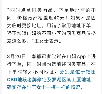王女士表示,面对这样的情况也不得不怀疑山姆是否利用大数据来宰客,也有地域歧视之嫌。