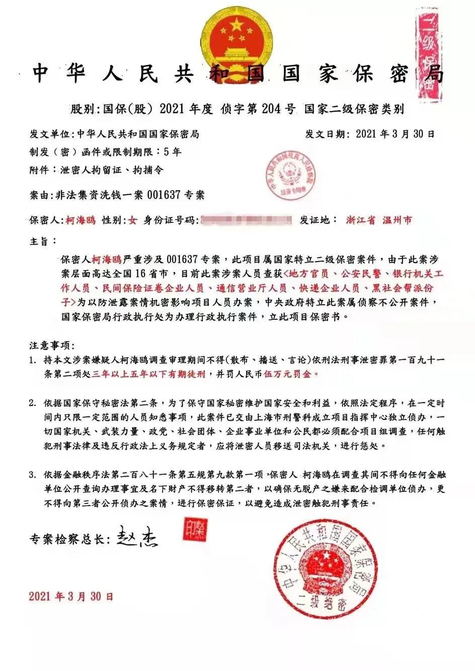 骗子伪造的假证件 加了微信后,对方先是发来了“警官证”,以证明自己的身份。然后发来一个链接,叫柯警官安装一个软件,说是“公安线上备案的通讯软件(国外软件:TeamLink)”,其真实目的是可以看到她的手机屏幕便于指挥操作。接着对方手把手教如何将手机通话设置成屏蔽所有人来电,短信也屏蔽。设置呼叫限制,就是让其他电话打不进来,短信发不进来,骗子能安心实施诈骗,在此过程中骗子还反复询问家中是否只有一人。柯海鸥“配合”骗子,打开了“TeamLink”软件,加入会议。对方说自己查到柯警官名下的一张工商银行卡涉嫌国际金融诈骗,涉案金额高达368万元,还发来了资金账户的“罪证”。骗子还反复询问柯海鸥是否到过上海,个人信息是否泄露,试图让其相信这个事实。 骗子伪造的涉案资金账户。 “你涉及的这起案件是国家二级保密案件,我现在和你说的任何话你都不能泄露给你的家人和朋友,不然就会以刑法泄密罪处置,这个罪行至少有三年的有期徒刑......”骗子说着还发来了一张“国家保密局”的文书,并称“要证明自己的清白,就要把你名下所有的资金转到一个安全账户......” 骗子伪造的“国家保密局”文书。 “到这个时候骗子终于露出自己真实的目的,基本上这个诈骗过程也差不多了,整个过程大概持续约2个小时。这时我们对骗子的诈骗证据基本固定,我就结束了与骗子的‘演戏’,不再搭理他们发来的东西,但骗子还在发一些恐吓言论。目前,我们已经对该起诈骗行为进行进一步调查。”柯海鸥说。 以上图文均来源于澎湃新闻、 ,转载目的在于传递更多信息,并不代表本号赞同其观点和对其真实性负责。如涉及作品内容、版权和其它问题,请在后台联系微信,我们将在第一时间删除内容! |