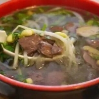 【鸭血粉丝汤】准备食材:粉丝150克、辣酱油、鸭血300克、鸭肝、鸭肠、豆腐泡、小油菜