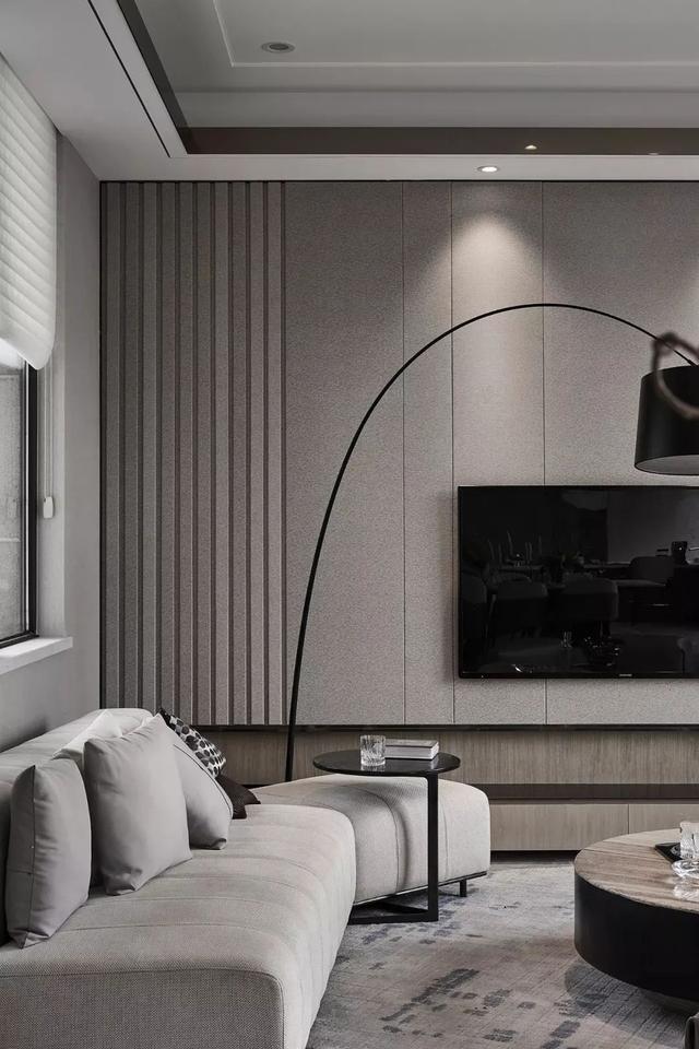 ▲客厅整体现代朴素的灰色调空间基础,摆上灰色弧形沙发,还有石材台面的圆茶几,也让空间显得充满现代优雅的高级精致感。